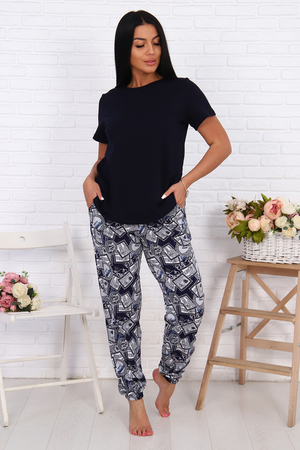 Женский костюм свободного силуэта выполнен из 100% хлопчатобумажного полотна. Ни к чему не обязывающую однотонную футболку, идеально сочетающуюся по цвету с брюками, в любой момент можно варьировать с другими видами одежды. А стильные и модные брюки - бананы, которые снова ворвались в моду, вызвав огромный ажиотаж у представительниц прекрасного пола - это идеальный вариант для дома и отдыха. В данной модели есть все качества, которые так необходимы для максимального комфорта: высокая посадка брюк, удобные вместительные карманы, пояс-резинка, выполненный на специальной поясной машине, дышащая х/б ткань и конечно же, свобода движения.