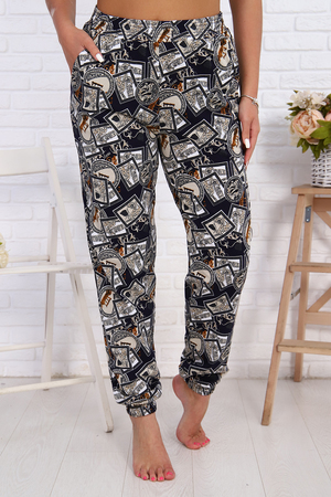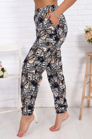 Женские стильные брюки - бананы выполнены из 100% хлопчатобумажного полотна. Высокая посадка, вместительные боковые карманы, удобный и качественно обработанный на специальной машине пояс-резинка - позволит Вам чувствовать себя максимально комфортно. Такой фасон брюк формирует выразительный женственный силуэт, скрывает мелкие недостатки фигуры и гармонизирует пропорции. Всё это образует идеальное решение для лука на каждый день, проведённый вами дома и на отдыхе.