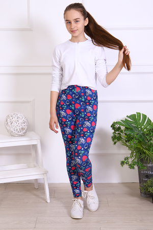 Леггинсы для девочек из трикотажного полотна кулирка с лайкрой, облегающие, длинные, сверху на резинке шириной 2.5 см. Низ и верх подогнуты.