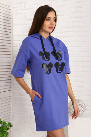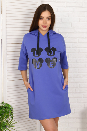 Туника с молодёжным принтом из тонкого, приятного к телу футера 2-х нитки с лайкрой. Модель с капюшоном, спущенная пройма, короткий свободный рукав, в боковых швах удобные карманы. Принт на передней полочке гармонично сочетается с декоративным шнуром в капюшоне. Туника - это универсальная вещь, которая должна быть в гардеробе каждой женщины, независимо от возраста и фигуры.