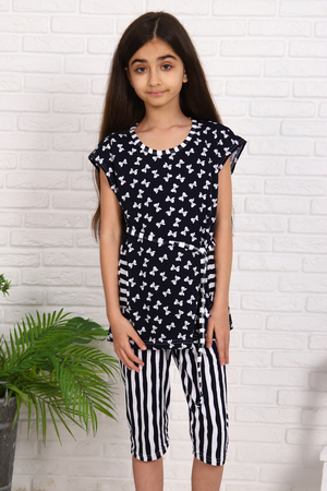 Детский летний костюм для девочки. Туника с кулиской и карманами, бриджи до колена