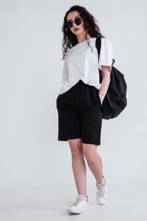 Стильные шортики для путешествий, прогулок, фитнеса и повседневного использования. Особенностями данной модели являются высокая посадка и свободный крой, благодаря чему нет скованности движениям. В боковых швах внутренние карманы с поперечными закрепками. Пояс прошит на поясной машине.