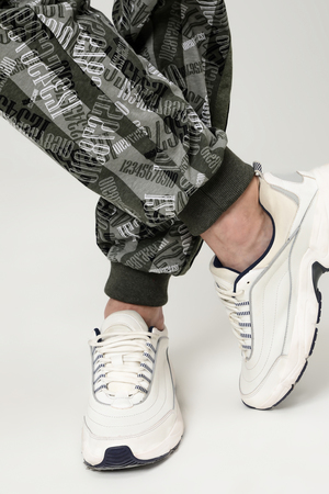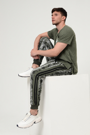 Брюки мужские на манжете. В боковых швах карманы. Пояс на резинке со шнуром, на боковых вставках лампасы. Можно составить комплект с футболкой 7318 (продается отдельно)