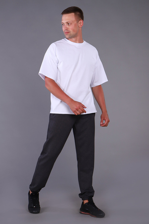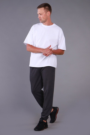 Модель мужских брюк с боковыми карманами, эластичный пояс на завязках - шнурках. Брюки свободно сидят по всей длине и прилегают в области щиколотки за счет резинки. Они легко вписываются в повседневный и спортивный стиль. Брюки такого типа можно сочетать с любимыми вещами. В таких штанах вы будете чувствовать себя комфортно и на тренировке, и на прогулке по городу.
