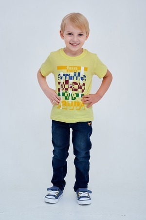 Футболка для мальчика прямого силуэта из кулирки. Сшита из высококачественного 100% хлопка, что позволит коже дышать при занятии спортом, в школе, на физкультуре и во время прогулки. Очень мягкая и удобная. Дышащий материал и свободный крой ежедневно дадут вашему ребенку ощущение комфорта. Наша футболка для мальчика - это отличный подарок мальчику на 23 февраля, День рождения, Новый год. На полочке яркий принт, который поднимет настроение детям. Горловина обработана воротником из основного полотна. Рукав втачной, короткий.