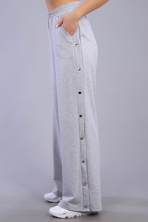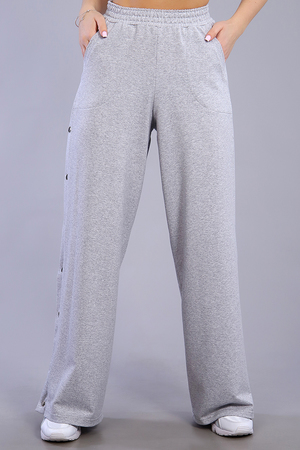 Брюки женские с кнопками по бокам. Данная модель выполнена из трикотажного полотна футер 2-х нитка. По бокам присутствуют карманы. Пояс отшит на поясной машине с резинкой 4,5 см. Отлично подходит для прогулок и для повседневной носки.