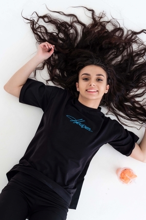 Велосипедки для девочки с высокой посадкой и футболка оверсайз. Это модный универсальный комплект. Есть как базовый цвет - черный, так и поярче: голубой. На поясе резинка, закреплена швами, что хорошо держит резинку и она не перекручивается. Прекрасно сочетаются как с пиджаком и грубыми ботинками, так и с кроссовками и объемными рубашками. Костюм шорты с топом прекрасно подойдет для спорта, танцев, для дома, для поездок. Что может быть удобнее? Такой комплект должен быть у каждой девушки для прогулок на лето и на фитнес. На футболке в чёрном цвете выполнена контрастная вышивка, а на голубой футболке печать. Модель выполнена их хлопкового трикотажного полотна, поэтому она идеальна в качестве домашней и спортивной одежды. Предусматривает машинную стирку при 30 градусах. Не использовать отбеливатель!