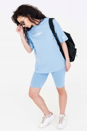 Велосипедки для девочки с высокой посадкой и футболка оверсайз. Это модный универсальный комплект. Есть как базовый цвет - черный, так и поярче: голубой. На поясе резинка, закреплена швами, что хорошо держит резинку и она не перекручивается. Прекрасно сочетаются как с пиджаком и грубыми ботинками, так и с кроссовками и объемными рубашками. Костюм шорты с топом прекрасно подойдет для спорта, танцев, для дома, для поездок. Что может быть удобнее? Такой комплект должен быть у каждой девушки для прогулок на лето и на фитнес. На футболке в чёрном цвете выполнена контрастная вышивка, а на голубой футболке печать. Модель выполнена их хлопкового трикотажного полотна, поэтому она идеальна в качестве домашней и спортивной одежды. Предусматривает машинную стирку при 30 градусах. Не использовать отбеливатель!