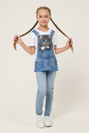 Детская футболка с очаровательным принтом. Круглый вырез горловины, втачной свободный рукав. В продаже есть аналогичная женская футболка 8256