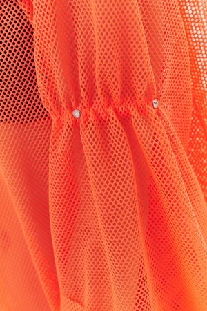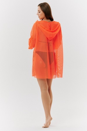 Туника женская пляжная, свободного силуэта, с капюшоном и длинным рукавом. Декорирована хальнитенами.