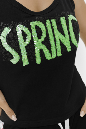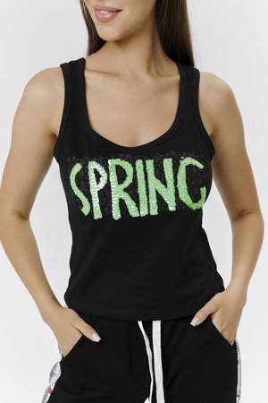 Майка женская полуприлегающего силуэта, оформлена ярким принтом и пайетками.