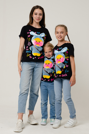 Футболка прямого силуэта, с округлой горловиной, длиной до середины бедра. Рукав втачной, короткий, с отворотом. Горловина обработана обтачкой из эластичного полотна. В продаже есть аналогичная детская футболка 5126