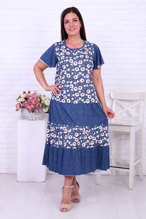 Платье женское, рукав крыло, платье длинное, воланами свободное, по переду рельеф.