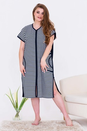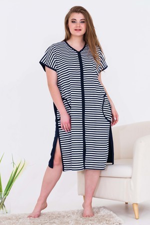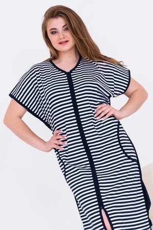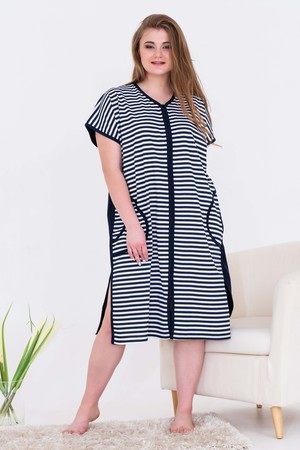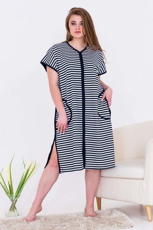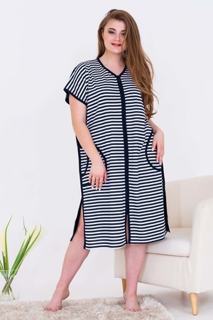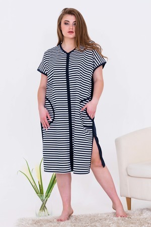 Оригинальный женский халат с застёжкой на молнии. В боковых швах имеются разрезы. Благодаря свободному крою идеально сидит на любой фигуре. Ткань 100% хлопок.