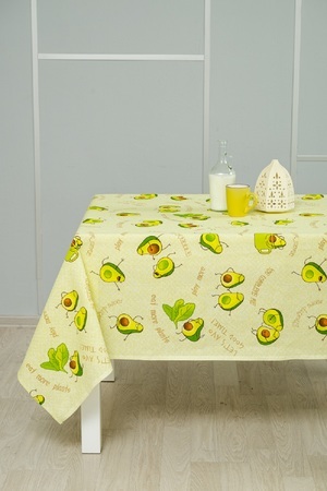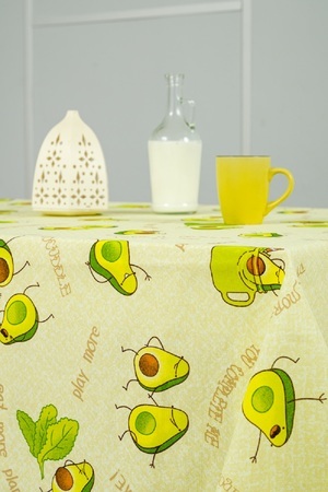 Столовая скатерть из рогожки с задорными авокадо. Стильный яркий рисунок на изделии добавит свежести вашей кухне, и поднимет настроение всем участникам приема пищи. Скатерть из рогожки очень практична в использовании, ее легко стирать и гладить. Ткань состоит из 100% хлопка и имеет оообое плетение, благодаря чему скатерть из рогожки очень прочная и износостойкая. Закажите так же полотенца Авокадо.
