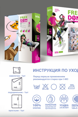 Коллекция постельного белья "Павлина" молодежного направления FREEDOM рассчитана на людей активных и ярких, современных и независимых. Стильные разноплановые рисунки не оставят равнодушным никого: универсальные модные тренды в сочетании с мягкостью и комфортом домашнего уюта! Постельное белье выполнено из бязи 125 гр.(100% хлопок): не подвергается усадке, не пилингуется, долго сохраняет насыщенность цвета. Размеры: Пододеяльник - 145х215 см, Простыня - 150х215 см, наволочка (1 шт.) - 70х70 см. Выбирая постельное белье Павлина - Вы всегда в тренде!