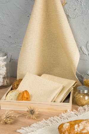Набор из трех однотонных полотенец бежевого цвета подойдет для любой кухни. Полотенца из рогожки размером 60*48 очень практичны. Отлично впитывают влагу и не требуют особого ухода. Могут стать дополнением к скатерти Алевтина.