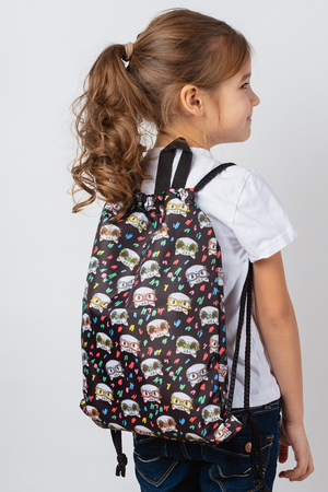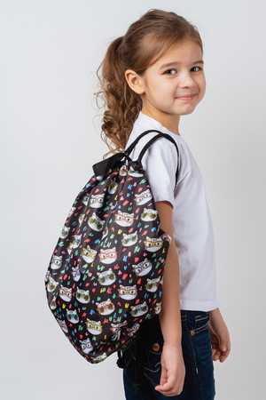 Мешок для обуви. Прекрасно подходит как мешок для игрушек в детский сад, как мешок для обуви и формы в спортивные секции (например, в гимнастику), как мешок для сменной обуви для младших классов и только для легкой обуви, как мешок-рюкзак на отдыхе для нужных мелочей. Вместимость: пара летней или осенней сменной обуви / игрушки / спортивная форма и обувь для детей до 110см ростом / форма для йоги или пилатеса / небольшие вещи для пляжа. Мешок-рюкзак из принтованной, плотной (115гр/м2) и водоотталкивающей ткани (оксфорд), размер 30х40см. Затягивается на толстые шнуры-ручки. Внутри есть небольшой карман на молнии для важных мелочей, для удобства сверху пришита ручка-петля из стропы, чтобы было удобно вешать на крючок или нести в руке. Мешок трудно испачкать, загрязнение достаточно протереть влажной тканью, но если все же удалось загрязнить, то мешок прекрасно выдерживает стирку