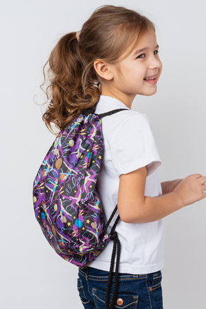 Мешок для обуви. Прекрасно подходит как мешок для игрушек в детский сад, как мешок для обуви и формы в спортивные секции (например, в гимнастику), как мешок для сменной обуви для младших классов и только для легкой обуви, как мешок-рюкзак на отдыхе для нужных мелочей. Вместимость: пара летней или осенней сменной обуви / игрушки / спортивная форма и обувь для детей до 110см ростом / форма для йоги или пилатеса / небольшие вещи для пляжа. Мешок-рюкзак из принтованной, плотной (115гр/м2) и водоотталкивающей ткани (оксфорд), размер 30х40см. Затягивается на толстые шнуры-ручки. Внутри есть небольшой карман на молнии для важных мелочей, для удобства сверху пришита ручка-петля из стропы, чтобы было удобно вешать на крючок или нести в руке. Мешок трудно испачкать, загрязнение достаточно протереть влажной тканью, но если все же удалось загрязнить, то мешок прекрасно выдерживает стирку