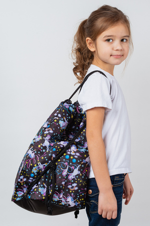Мешок для обуви объемный Единороги гимнасты черный фон