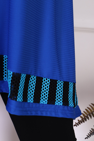 Элегантная женская туника формы трапеция. Цельнокроеная расклешенная полочка делает изделие легким и свободным. Округлый ворот и длинный рукав. По низу изделия вшита лента из материала сетка. Удобно и практично.