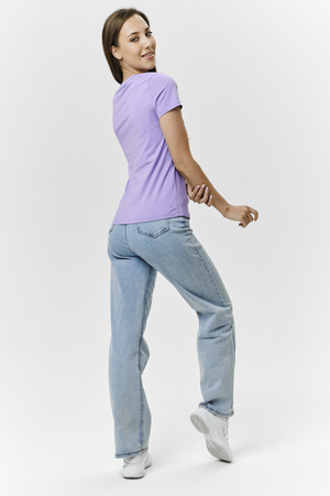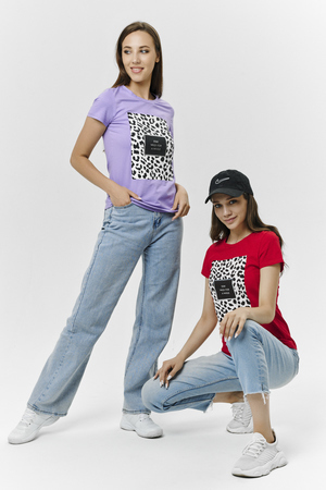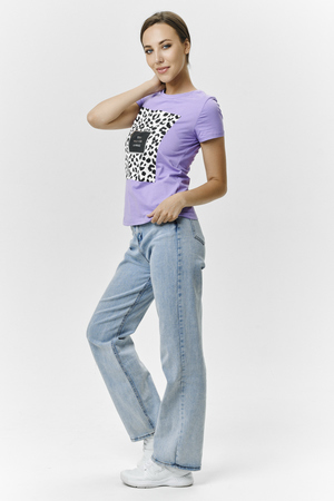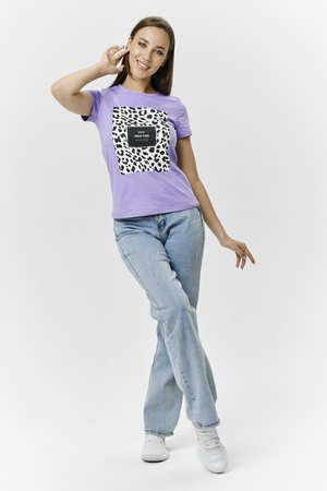 Футболка прямого силуэта, с округлой горловиной, длиной до середины бедра. Рукав втачной, короткий. Горловина обработана обтачкой из основного полотна.