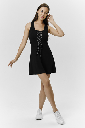 Сарафан женский приталенного силуэта, полочка оформлена люверсами с декоративным шнурком.