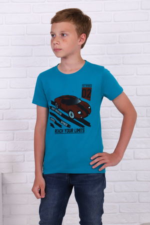 Футболка детская. На полочке имеется печать. Короткий втачной рукав, низ обработан в подгибку. Горловина изделия круглая. 100% хлопок, ткань очень приятная к телу. Очень стильная, ваш ребенок будет доволен.