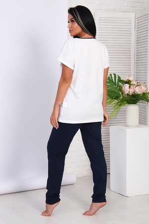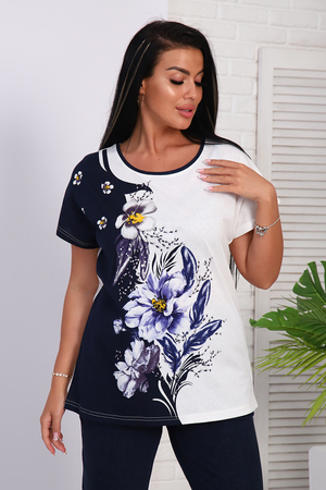Женский костюм с брюками - идеальный вариант как домашней одежды, костюма для прогулок и путешествий, но так же и как пижама для сна. Для пошива используется ткань со 100% содержанием хлопка. Идеальное лекало костюма позволит подчеркнуть все достоинства фигуры, в то же время модель не сковывают движений и позволяет чувствовать себя комфортно в любых условиях. Особую изюминку изделию придает эффектный дизайн в виде сочетания двух контрастных друг к другу цветов, место стыка которых декорировано изображением прекрасного букета. Так приятно в конце рабочего дня сменить повседневный офисный костюм на такую мягкую и приятную трикотажную одежду!