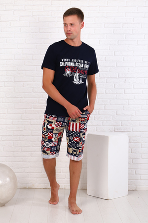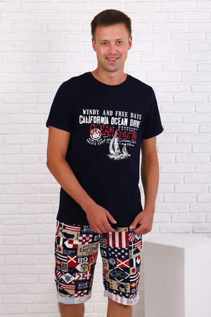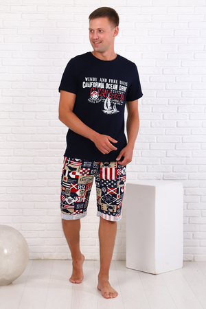 Мужской костюм летний, выполнен из натуральной ткани 100% хлопок. Модель для повседневной, домашней носки, состоящая из шорт и легкой свободной футболки с коротким рукавом. Комплект костюма состоит из широкого размерного ряда, и важно отметить, что включает в себя большие размеры. Шорты на резинке имеют 2 боковых кармана, также эластичный пояс