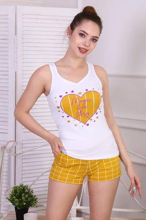 Домашний летний костюм состоит из майки и шорт, шорты с карманами из кулирки, майка из кулирки с лайкрой, что обеспечивает идеальную посадку по фигуре.