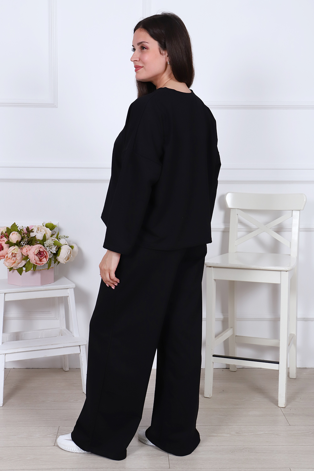 Лаконичный костюм для девушек, которые ценят стабильное ощущение комфорта. Верх свитшот оверсайз, низ ультрамодные широкие брюки клеш с высокой посадкой. Выполнен из футера 2-х нитки. Благодаря натуральному составу ткани, прекрасно подходит как для жаркой, так и для прохладной погоды. Такие комбинации сейчас на пике моды, поэтому вы всегда будете выглядеть стильно и актуально. Отличный вариант для прогулки, поездки, путешествий и повседневной носки. Спортивный костюм это незаменимая вещь в гардеробе каждой девушки.