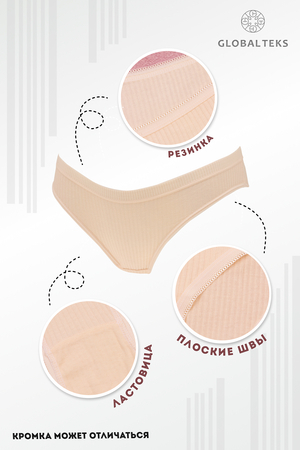 Трусы женские в рубчик, выполнены из 95% хлопка и 5% спандекса. В упаковке 2 штуки одного цвета и размера на выбор.