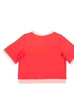 Уютный костюм для самых маленьких и немного постарше детишек. Футболка и брюки из приятного на ощупь футера двунитки. Удобные не стесняющие штанишки на широком поясе с манжетами по низу. Незаменим для повседневных прогулок, в детский садик или в качестве домашнего костюма. Легко стирается, не закатывается.