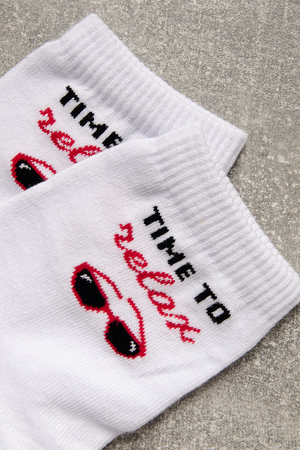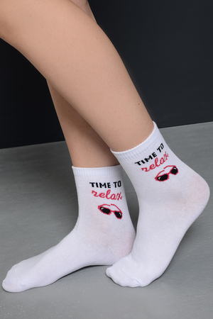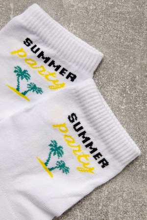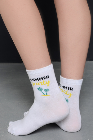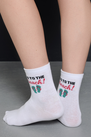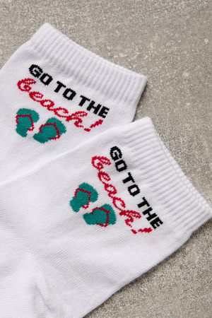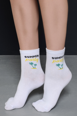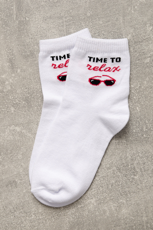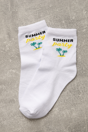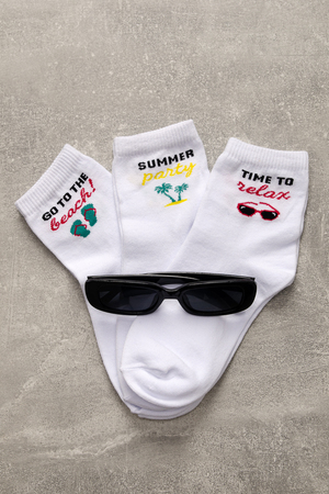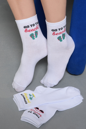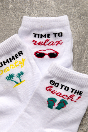 Комплект белых носков с тематикой отпуска и отдыха. Комплект 3 пары.