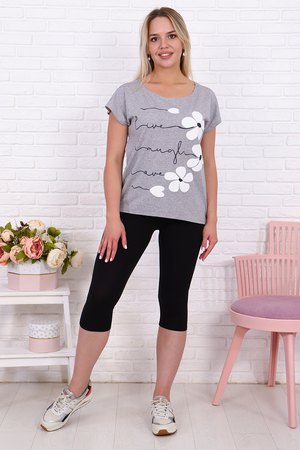 Костюм женский с принтом состоит из футболки и бридж. Модель представлена в трех трендовых оттенках этого сезона. Футболка выполнена из трикотажного полотна высокого качества, полуприлегающего силуэта, горловина в виде лодочки. Бриджи удобные, практичные, облегающего силуэта. Резинка вшита в пояс, длина чуть ниже колена. Ткань бридж мягкая на ощупь, не садится после стирки и не теряет цвет. Костюм непременно станет идеальным предметом вашего гардероба для фитнеса, туризма и любого активного отдыха.