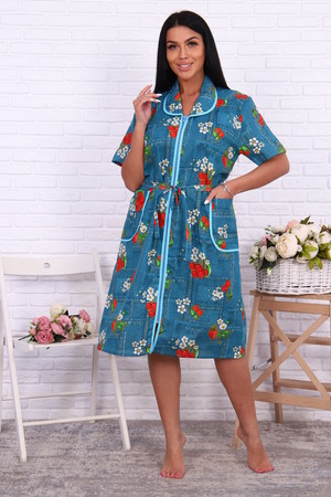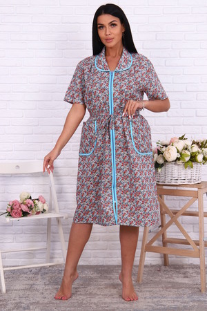 Женский домашний бязевый халат на молнии. С приспущенным рукавом и двумя накладными карманами, с поясом. Изделие окантовано бязевой окантовкой. Халат подходит для женщин любого возраста. В нём удобно и комфортно. Рекомендуемая стирка при 30°.