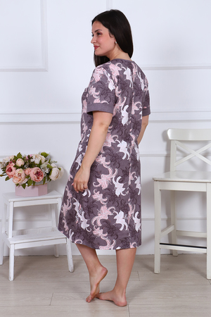 Халат женский полуприлегающего силуэта на молнии. Рукав втачной короткий. На полочке накладные карманы с вставкой из отделочной ткани. Горловина округлой формы. Кокетка полочки округлая, выполнена из отделочной ткани. Низ халата подгибка.