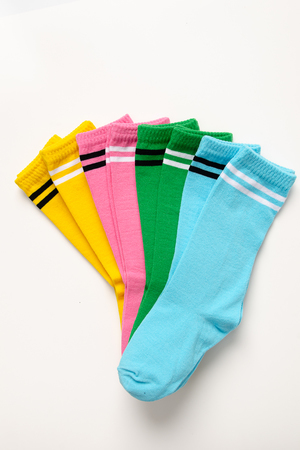 Яркие детские гольфы Колор - точно привлекут внимание окружающих. На манжете полоски разного цвета.