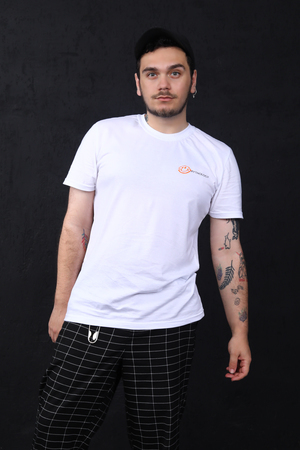 Футболка мужская с коротким рукавом. Данная модель выполнена из трикотажного полотна (кулирка). На полочке и спинке присутствует  принт. Горловина обработана из эластичного трикотажного полотна (рибана). Отлично подходит для прогулок.