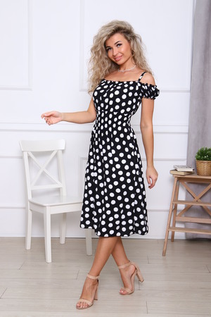 Сарафан женский на бретелях, с рукавом - оборкой. Выполнен из натуральной хлопковой ткани, Слегка расклёшенного силуэта собранный на резинку по линии талии. Длина Миди выгодно подчеркнет достоинства вашей фигуры.