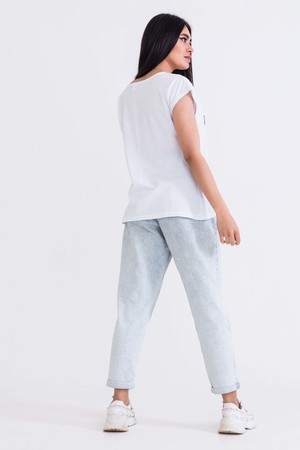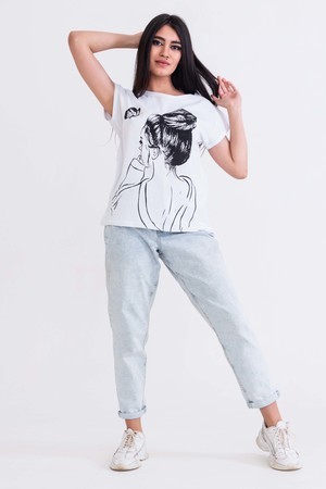 Футболка женская с коротким рукавом и круглым воротом. Изделие выполнено из 100% хлопка в белом цвете. Оригинальный принт подчеркнет индивидуальность и женственность. Подойдет на любую фигуру, подчеркнет достоинства и скроет недостатки.