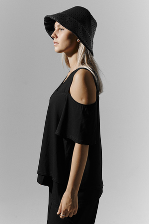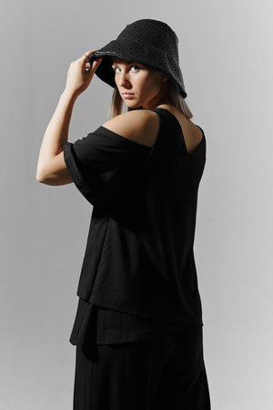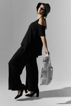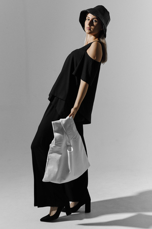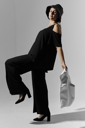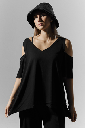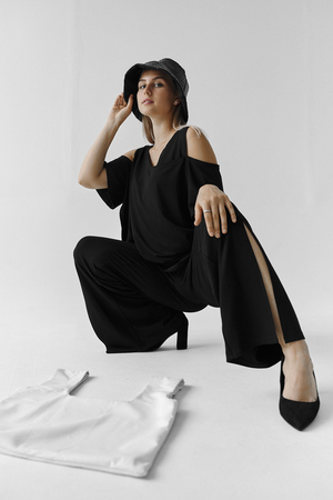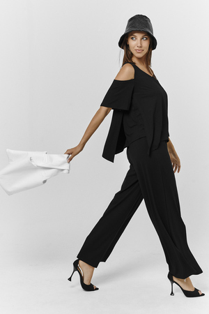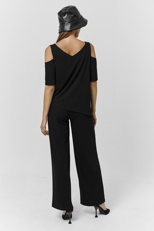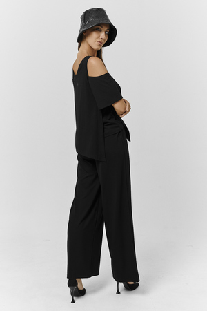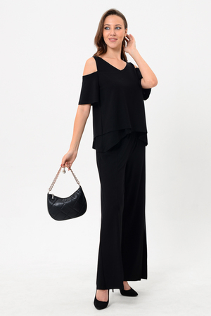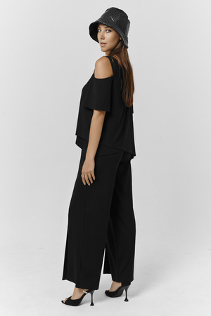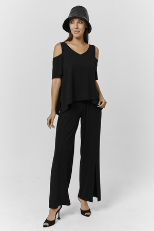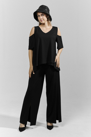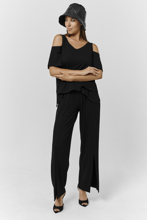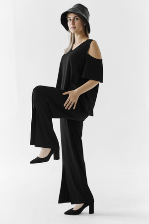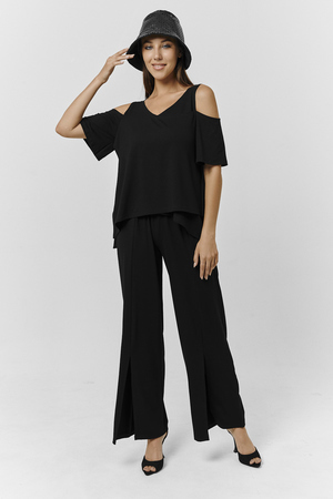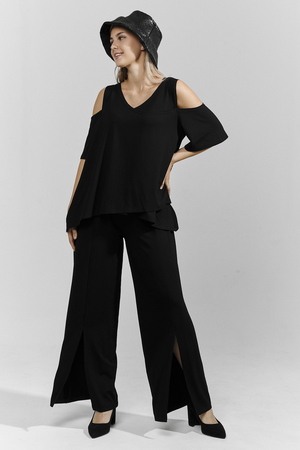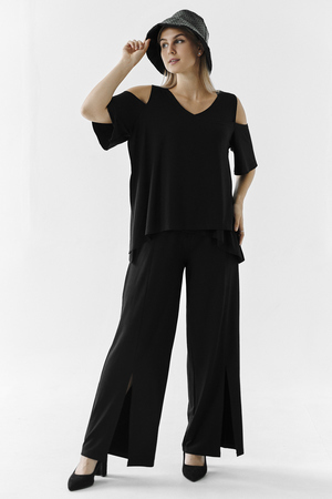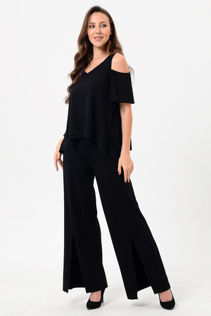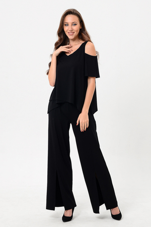Костюм женский свободного силуэта. Рукав с открытым плечом. Брюки с разрезами по низу. Прекрасно будет смотреться на праздничном вечере