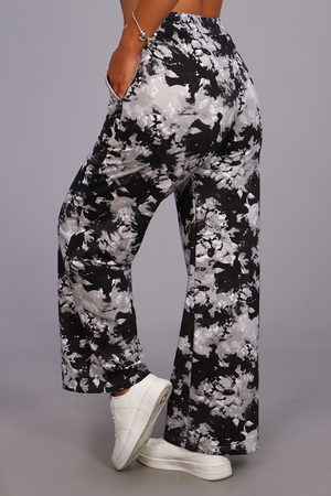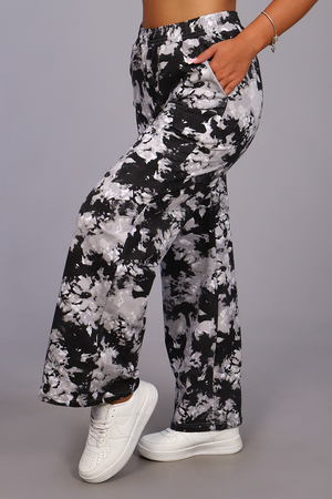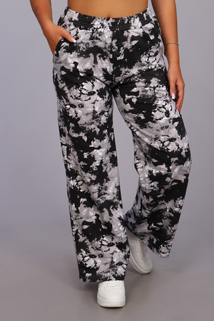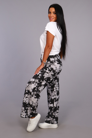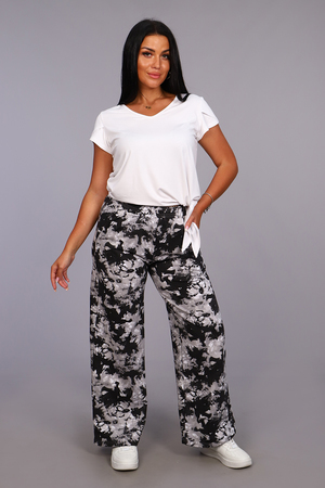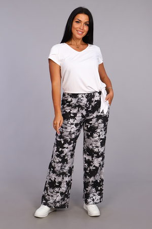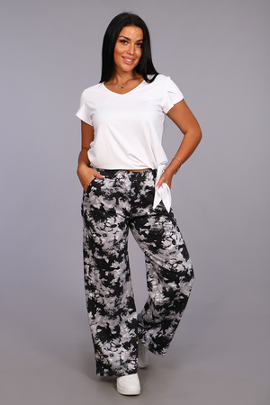 Женские модные брюки-палаццо выполнены из футера в стиле тай-дай. Тай-дай стал настолько большим феноменом, что даже смог проникнуть в уличную и высокую моду, где совершенно не затерялся и получил множество интересных интерпретаций. Высокая удобная посадка, вместительные боковые карманы и качественно обработанный на специальной машине пояс - все это позволит Вам чувствовать себя максимально комфортно. В брюках такого плана Вы будете выглядеть неординарно, модно и стильно.