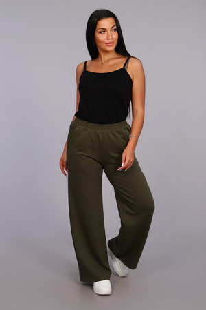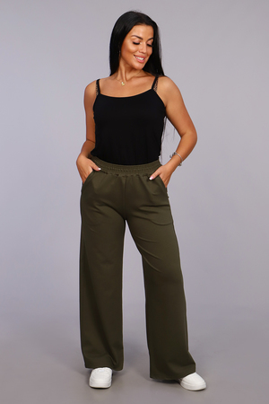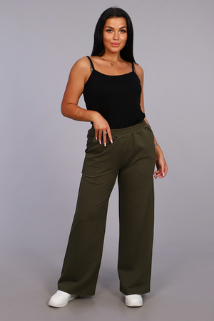 Женские модные брюки-палаццо выполнены из футера. Прямой крой, высокая удобная посадка, вместительные боковые карманы, качественно обработанный на специальной машине пояс - всё это позволит вам чувствовать себя максимально комфортно: дома, на работе, в школе... Какой бы образ не выбрала модница, широкие брюки станут её достойным украшением. Хотите, чтобы Ваши ноги казались стройнее, а талия стала визуально тоньше? Пополните гардероб ультра модной моделью брюк-палаццо.