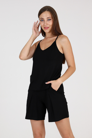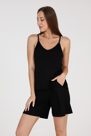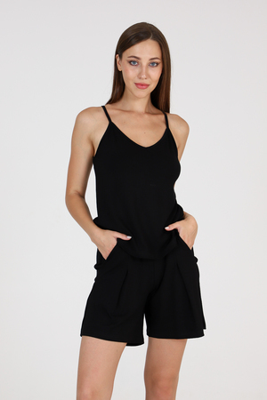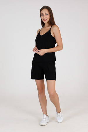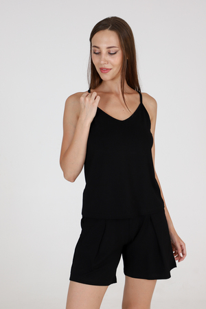 Шорты на поясе, с боковыми карманами. В верхней части передних половинок по шву притачивания пояса расположены складки.