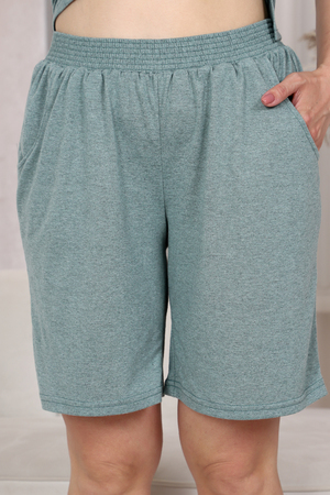 Галина Халимжановна28.03.2024 в 00:13Костюм на лето, пошив чистый, рисунок на груди мягкий и гибкий, полностью соответствует таблице размеров, ткань с эластаном, не будет растягиваться и скатываться при носке, вырезы на рукавах ровные и аккуратные. Шорты оказались с низкой посадкой, на рост 160см перед до пупка натянула с трудом, пришлось чуть перешить гульфик, не ожидала такого от 54размера, посадка не очень удачная. Хотя модель интересная, задумка хорошая, штанины шорт не широкие, сидят по ноге.Рекомендую дамам с талией, если в размере 54-56 появилось возрастное пузико, шорты могут не сесть, перед шорт будет съезжать вниз, надо будет чуть перешить