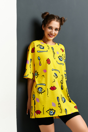 Футболка женская свободного силуэта оверсайз со спущенным рукавом и боковыми разрезами, яркая и очень удобная, как для дома, так и для прогулок в летний сезон.