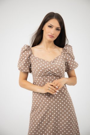 Молодежное праздничное платье с красивой зоной декольте, которая идеально оформляет линию груди, а яркий контраст пышных рукавов и облегающего силуэта делает фигуру более тонкой и хрупкой. Рукава собраны на резинку на плечах и по низу, юбка платья свободная и расклешенная. В среднем шве спинки расположена потайная молния. Платье выполнено из ткани супер-софт. В составе полотна полиэстер с лайкрой, что может вызвать при носке статику, которая легко снимается с помощью антистатических средств и стирки с кондиционером.