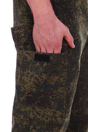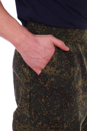 Брюки спортивные летние туристические. Бренд "СКЕЛА" предлагает штаны туристические, изготовленные из 35% натурального хлопка и 65% полиэстера. Брюки хорошо сидят, не сковывают движения, легкие и удобные. Универсальные и удобные с прорезными и накладными карманами. Пояс на эластичной резинке, что обеспечивает максимальный комфорт. Брюки представлены в камуфляжном цвете расцветки "Пиксель/цифра", которая неразличима глазом на фоне летней природы умеренной полосы. Прекрасно подойдет для охоты, рыбалки, туризма и прогулок, а также для хозяйственных работ, для строительных работ, для работы в сервисе и прочих работ. Модель унисекс. Представлен широкий размерный ряд, включающий большие размеры. По стандартам для спецодежды длина брюк измеряется от шва втачивания пояса (без учета его ширины) до низа брюк.